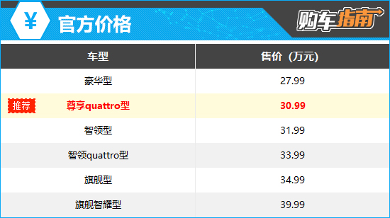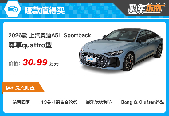 综上所述,对于上汽奥迪A5L Sportback车型,售价30.99万元的尊享quattro型性价比相对更高,限时臻享价28.39万元,消费者在选购时可以优先考虑。