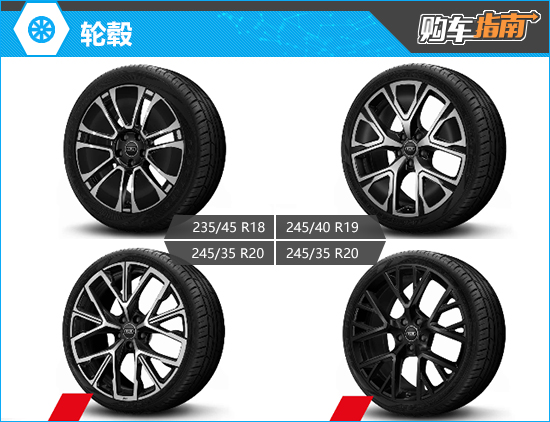 新车提供4种轮毂样式可选,两款双五辐式20英寸RS轮毂运动感爆棚。不过遗憾的是,其中的双五辐曜黑轮毂是首发限量版车型的专属配置,其它配置车型均无法选装。根据配置不同,上汽奥迪A5L Sportback共有3种轮胎规格,分别为235/45 R18、245/40 R19以及245/35 R20。