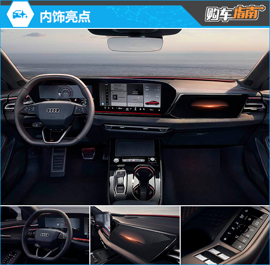 内饰部分,上汽奥迪A5L Sportback采用了奥迪全新一代智能座舱布局,做工精致用料扎实,营造出很强的精致感与豪华氛围。曲面一体屏由11.9英寸液晶仪表以及14.5英寸中控屏组成,通过3D曲面弧度的细微调整,使得中控屏向主驾驶位一侧倾斜,整体观感十分出色。此外,新车还配备10.9英寸副驾娱乐屏,能够提供出色的影音娱乐体验。